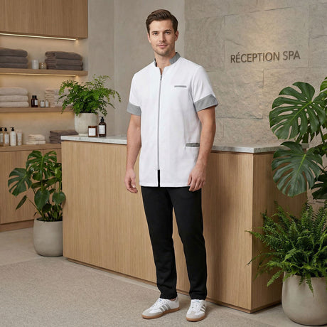 Cette collection de tenues paramédicales avant-gardistes répond aux besoins des professionnels actifs avec des vêtements professionnels au design sportif, parfaits pour moderniser votre vestiaire professionnel. Ces tenues médicales sont confectionnées en maille stretch double tricotage, avec une fibre coton douce au contact de la peau et une surface extérieure en polyester, offrant une respirabilité optimale et une gestion efficace de l'humidité.
