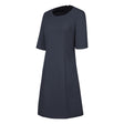 Elegant straight cut dress, it will suit women providing service or reception in a hotel. The Seine women's dress is made of a 63% polyester 33% viscose 4% elastane 212g fabric that is pleasant to the touch. It features a round neckline with piping and a zip closure in the back. This ¾ sleeve dress with slit at the bottom of the sleeve is available in 3 colors: gray, navy blue or black. Wearing close to the body, the Seine dress dress offers a classy and very feminine look.