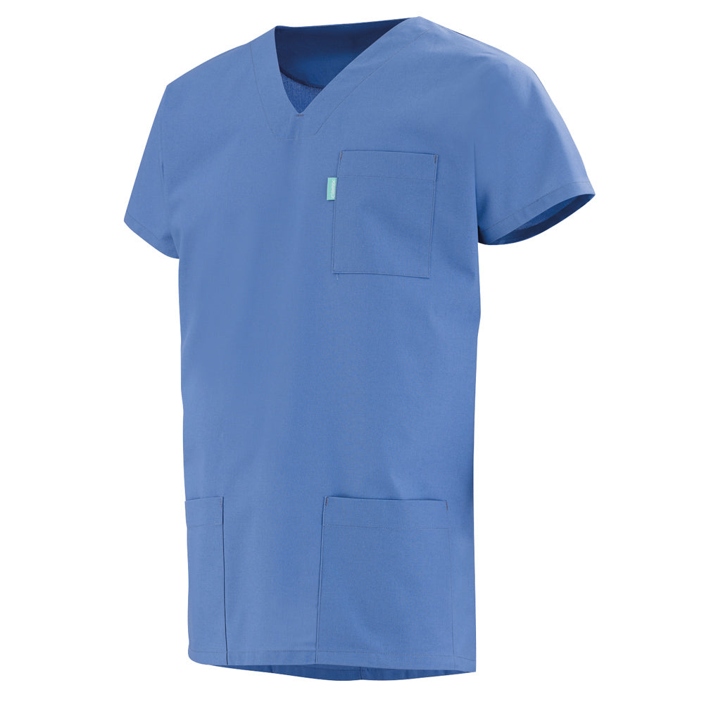 Simple and comfortable work tunic intended for professionals in the hospital and medical sector. Designed in a lightweight 50% cotton 50% polyester 190 gr canvas, the Almire unisex medical tunic comes from the Lafont range of blouses. These breathable professional clothing help regulate body moisture. This provides surgeons and doctors, for example, with more comfort during a medical procedure in the operating room. The Almire unisex blouse also has a V-neck, short kimono-style sleeves and 3 functional pockets. It is available in 2 colors: Persian blue or operational green.