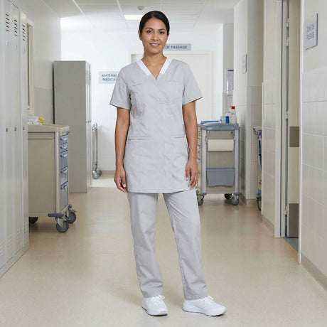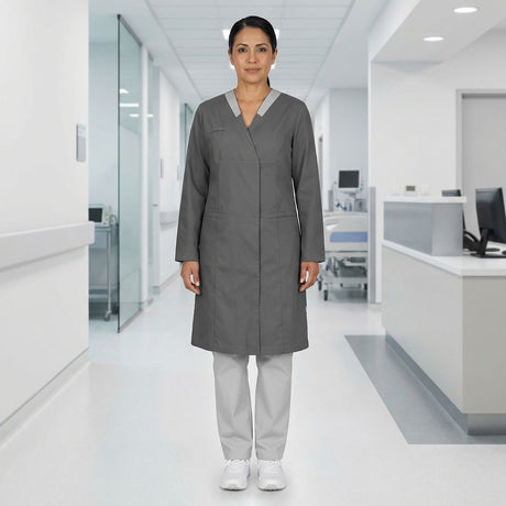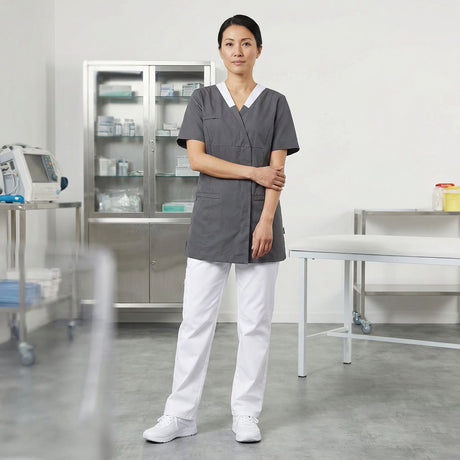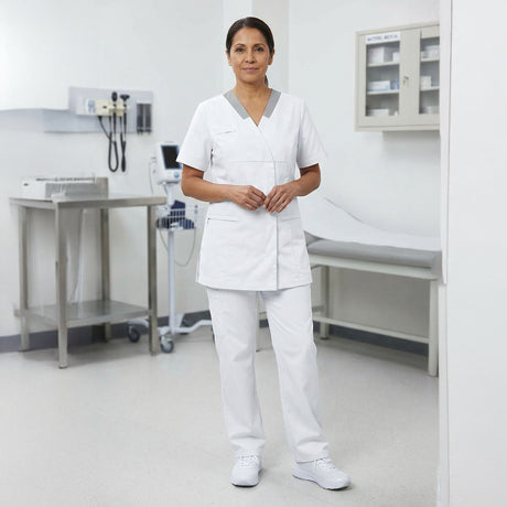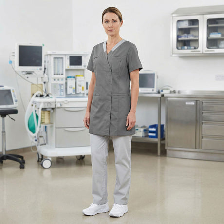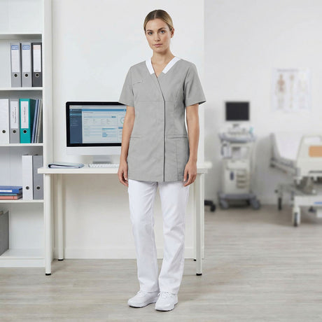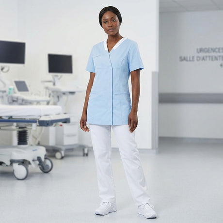 Questa collezione di abiti medicali è ispirata all’universo dell’assistenza e della relazione con gli altri. Questa linea riflette una perfetta armonia tra comfort ed estetica, pensata per i professionisti attenti a creare un rapporto sereno con i propri pazienti. I colori rassicuranti come il bianco, il perla e l’antracite offrono un tocco di sicurezza e fiducia. L’audacia del bordeaux aggiunge dinamicità, mentre i toni pastello rosa quarzo e azzurro evocano calma e leggerezza, creando un’atmosfera dolce e accogliente.