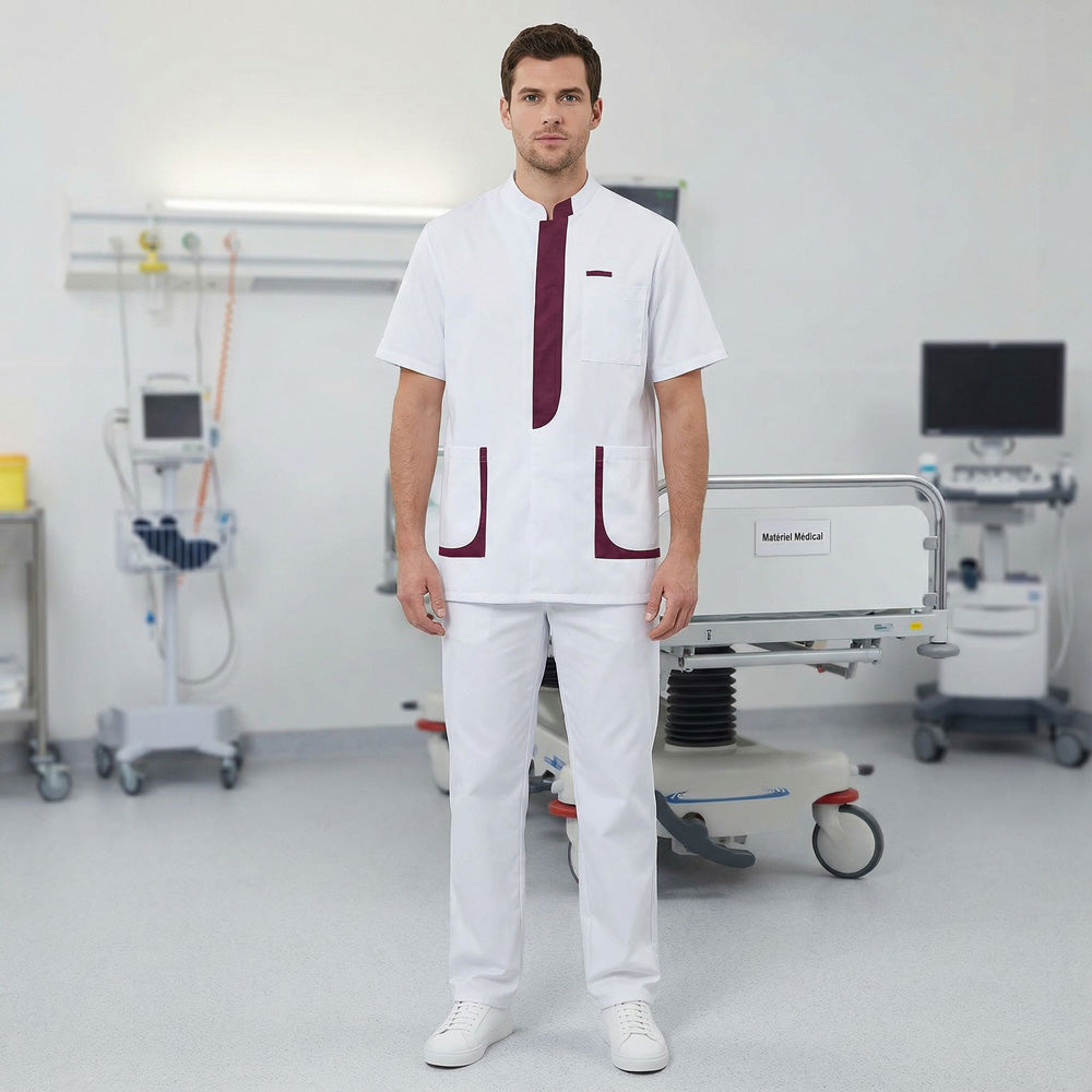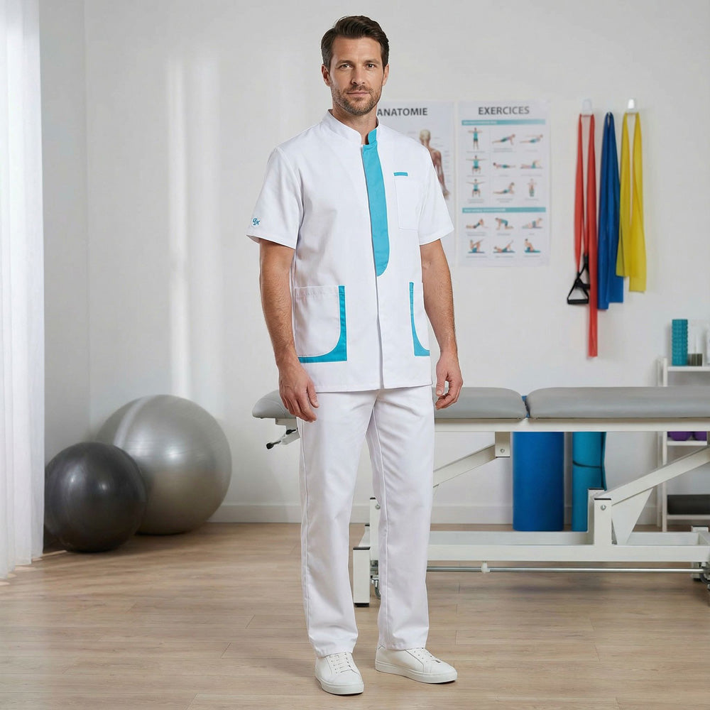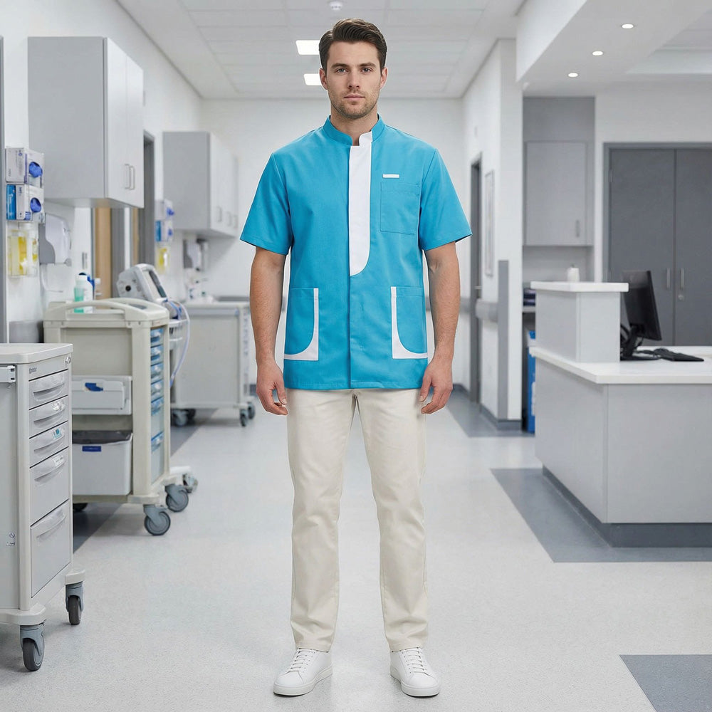 Un indumento medico per uomini che lavorano nel settore dell’assistenza e della salute. Realizzata in tessuto 50% poliestere 50% tencel® lyocell, la casacca da lavoro uomo Lee è resistente e confortevole. La produzione del tencel® che la compone è sostenibile e rispettosa dell’ambiente. Utilizzata per la realizzazione dei camici Lafont, questa fibra traspirante offre proprietà anti-odore. Questa casacca professionale a manica corta è dotata di colletto alla coreana, chiusura con bottoni nascosti e piega di agio sul retro. Funzionale, la casacca medica Lee integra due tasche inferiori e un gancio per orologio o portabip posizionato sopra la tasca sul petto.