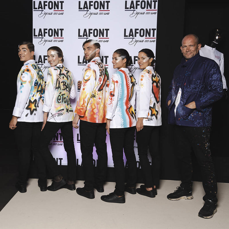 Amour du « bien faire », beauté du geste, transmission et excellence du travail manuel à la française, en devenant l’équipementier des équipes des restaurants du Guide MICHELIN, Lafont réaffirme les valeurs qui furent les siennes dès sa création en 1844. Fidèle à son modèle artisanal depuis la création du bleu de travail à Villefranche-sur-Saône par Adolphe Lafont, l’enseigne n’en oublie pas de se développer et d’innover pour habiller les professionnels avec style et technicité.