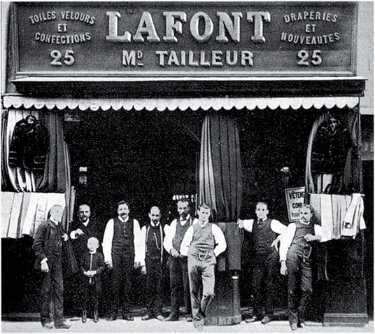 Louis Lafont, grand-père d’Adolphe et colporteur pyrénéen, décide d'ouvrir un magasin à Lyon, ayant perçu le potentiel du commerce de tissus stimulé par le florissant négoce de la soie. Après avoir épousé une Caladoise, il s'installe définitivement au 25 Grande Rue de la Guillotière à Lyon. Son fils reprendra l'exploitation du magasin, y ajoutant un atelier de tailleur pour compléter le rayon de tissus et de vêtements confectionnés.