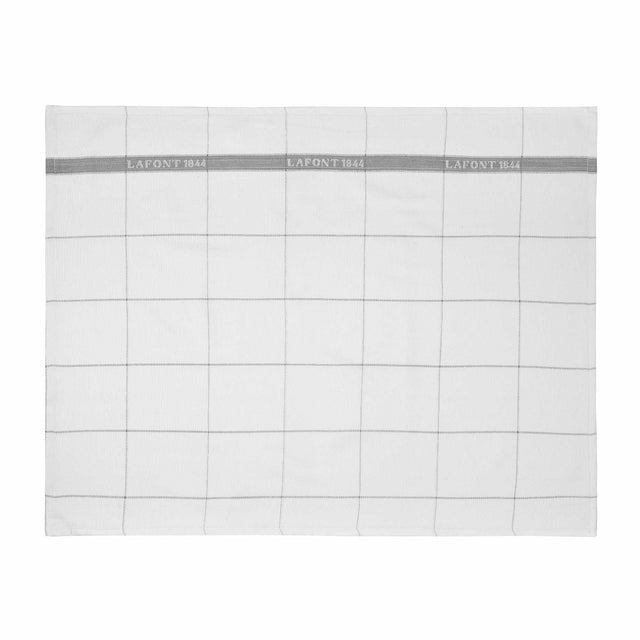 Torchon blanc à carreaux gris et galon iconique LAFONT. Avec accroche torchon. Conception Française.