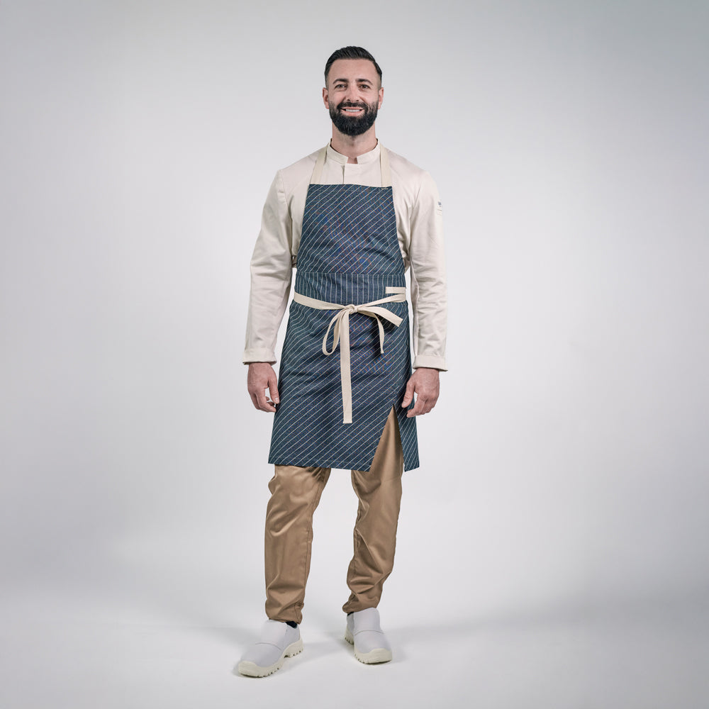 Tablier 2 en 1, parfait pour les professionnels de la cuisine et de la restauration. Il est équipé d'un tour de cou réglable par coulisse, d'une poche pratique à l'avant, d'un passe-torchon intégré et est fendu au niveau des genoux pour votre aisance de marche. Ce tablier éco-conçu pour être aussi porté avec la bavette rabattue, offrant ainsi une polyvalence optimale selon vos besoins. Fabriqué en denim polyester recyclé et coton recyclés, il allie durabilité, confort et engagement écoresponsable.