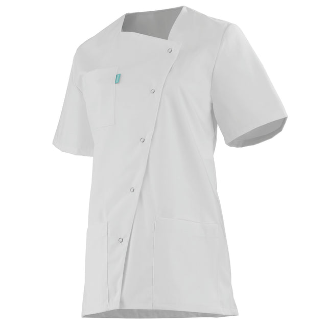 Tunique de travail pour les femmes évoluant dans le secteur des soins et de la santé. Composée d’un tissu 67% polyester 33% coton 210 gr/m², la tunique médicale Aline est confortable et peut être lavée à haute température. Sa fermeture asymétrique par boutons pression permet de l’enfiler facilement. Cette blouse médicale manche courte possède également une encolure asymétrique, 2 grandes poches basses et une poche poitrine permettant de garder accessoires professionnels ou effets personnels avec soi. Disponible dans de nombreuses tailles, cette tunique professionnelle répondra parfaitement aux besoins des infirmières, aides-soignantes ou autres professions médicales.